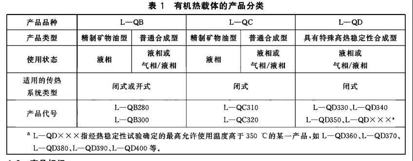 有机热载体的产品按使用温度分类表